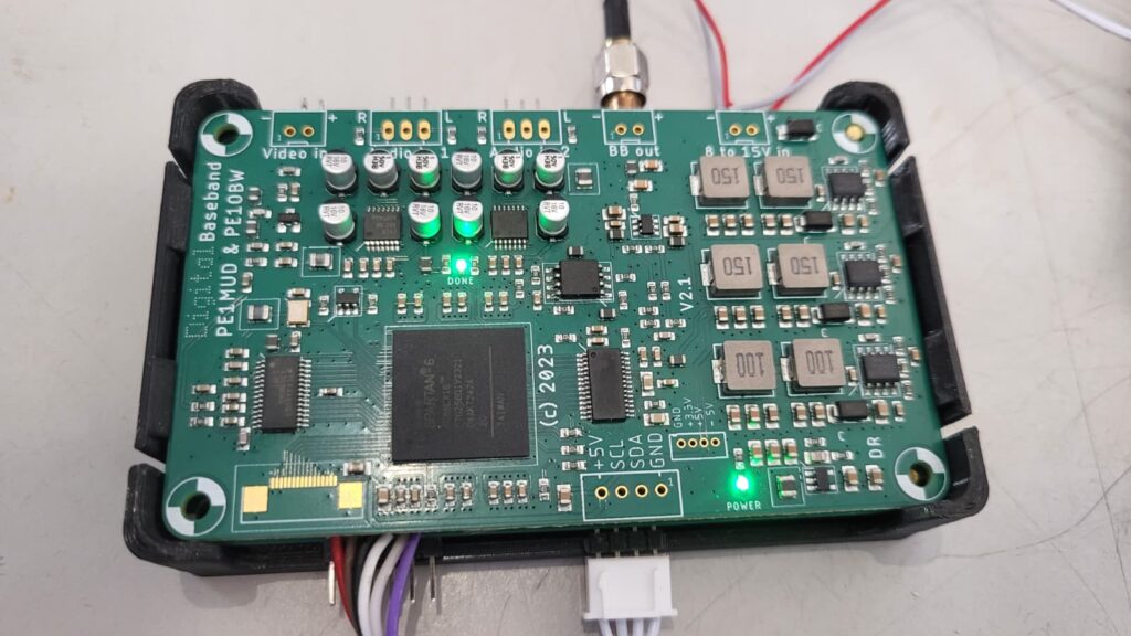 Pictures More will follow! X-Ray image of BGA after production. This is what the board looked like during the design phase. Programming and testing in a 3D printed cradle with pogo pins to reach the pads on the underside of the board.